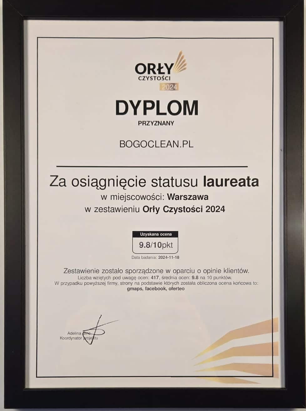 Orły Czystości przyzanawane są na podstawie opinii wydawanych przez Klientów w niezależnych źródłach internetowych. Orły Czystości, to liderzy branży – ci, którzy stawiają na rozwój kompetencji i technologii. Cieszymy się, że udało nam się znaleźć w tym gronie.